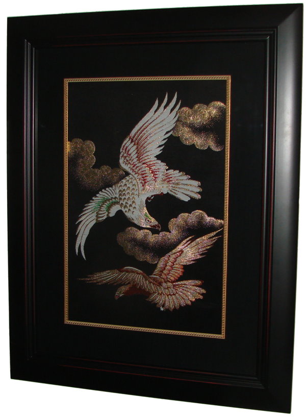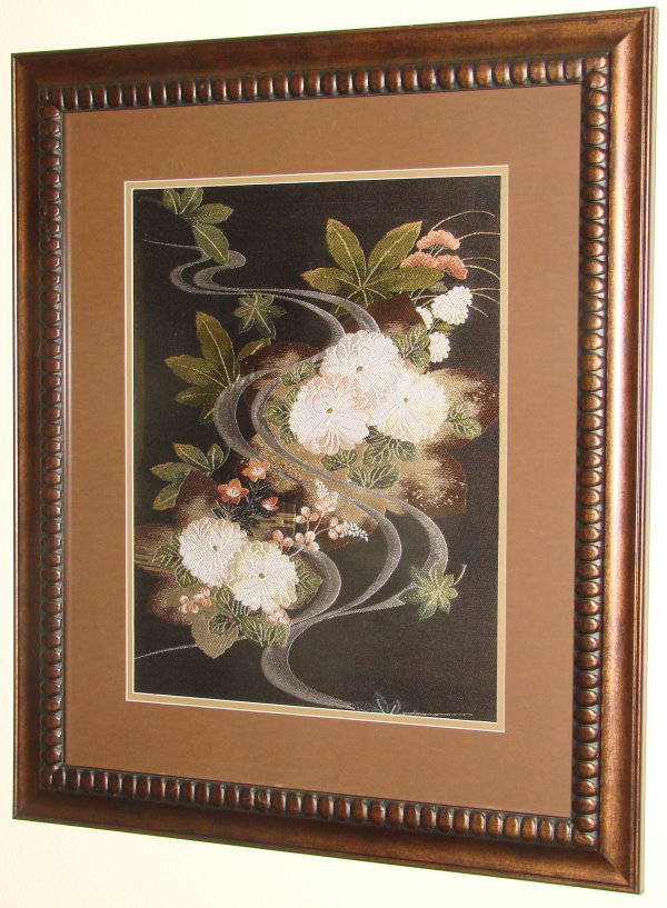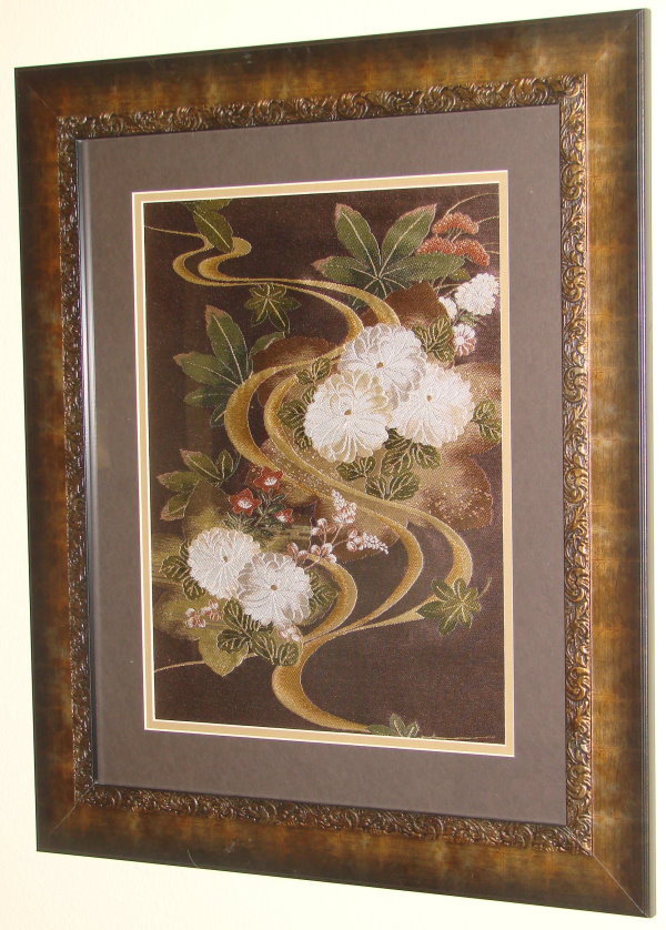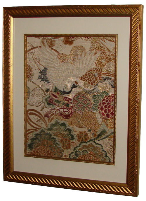We have many more pieces which are unframed and available for purchase. We can mat and frame them or sell them "as is" for your custom framing. To see some of the pieces that are available, click on "Prodict info" in the navigation bar above, and then click on "Fabric" in the drop-down menu. Some of our available pieces can be viewed by clicking on "Fukusa" and "Obi+Kimono".