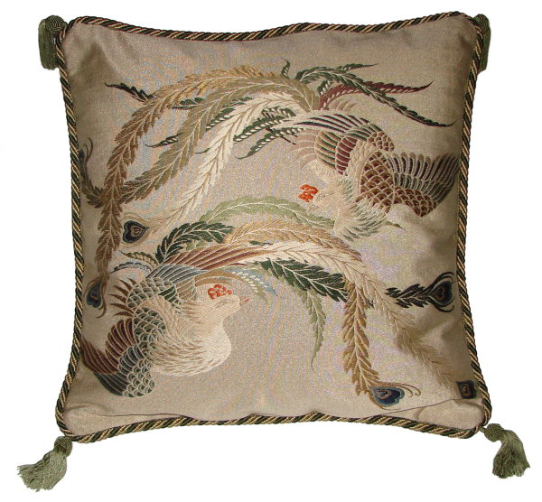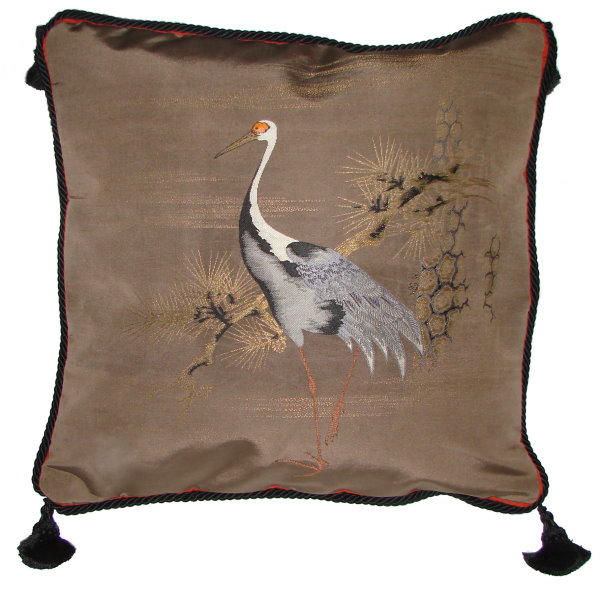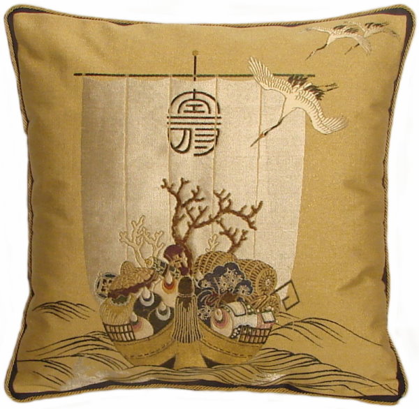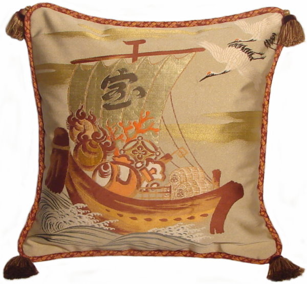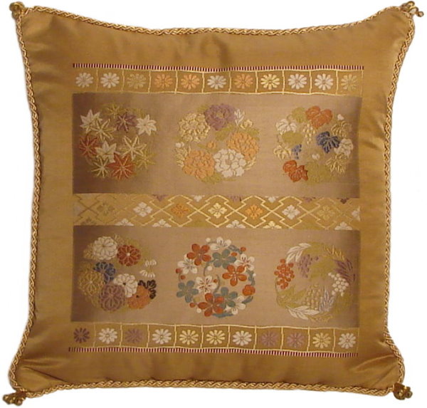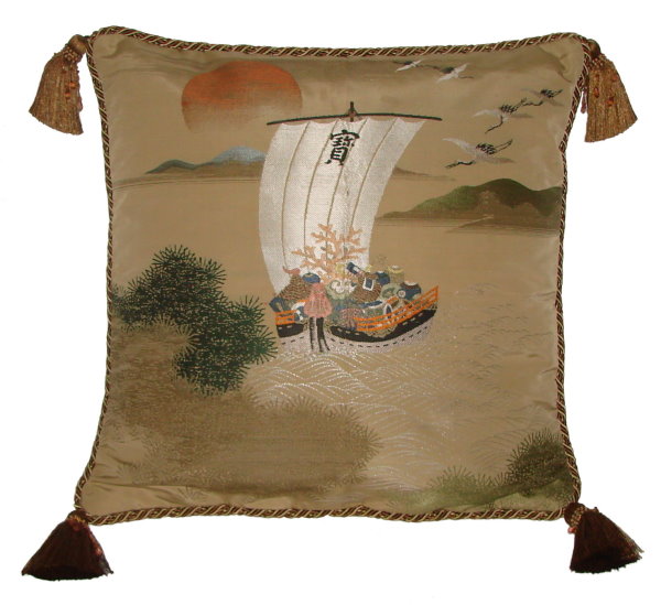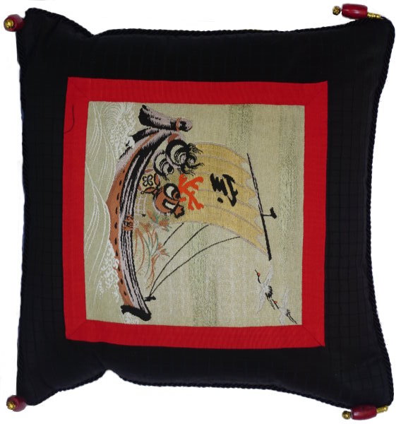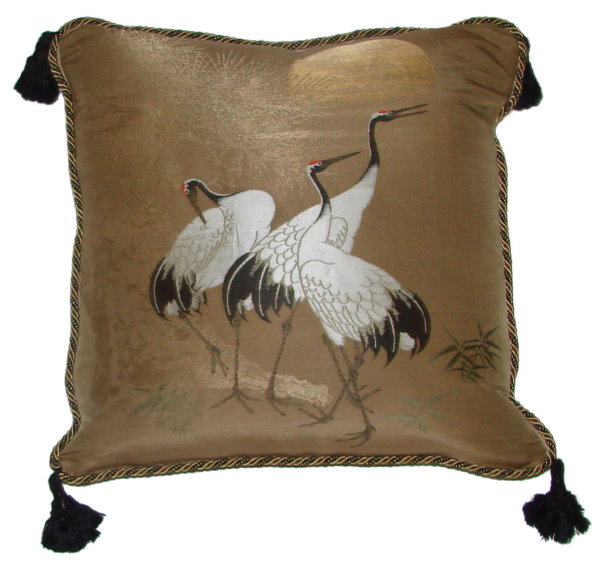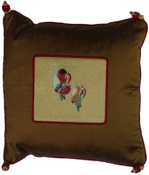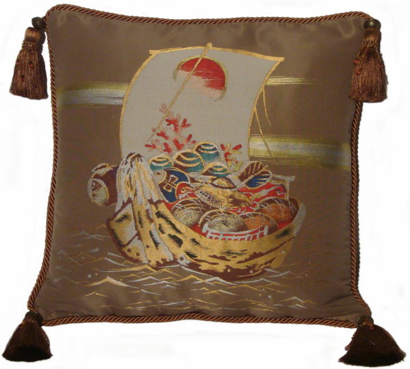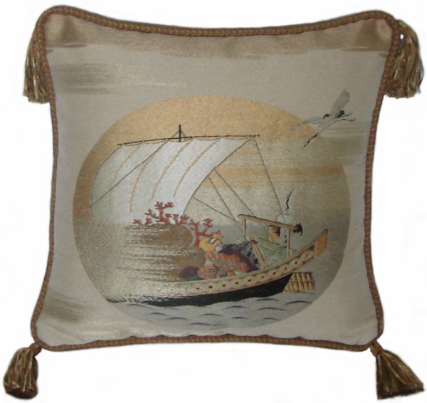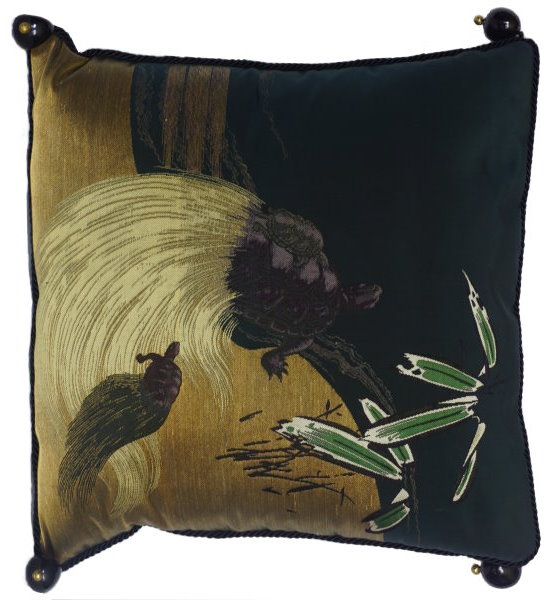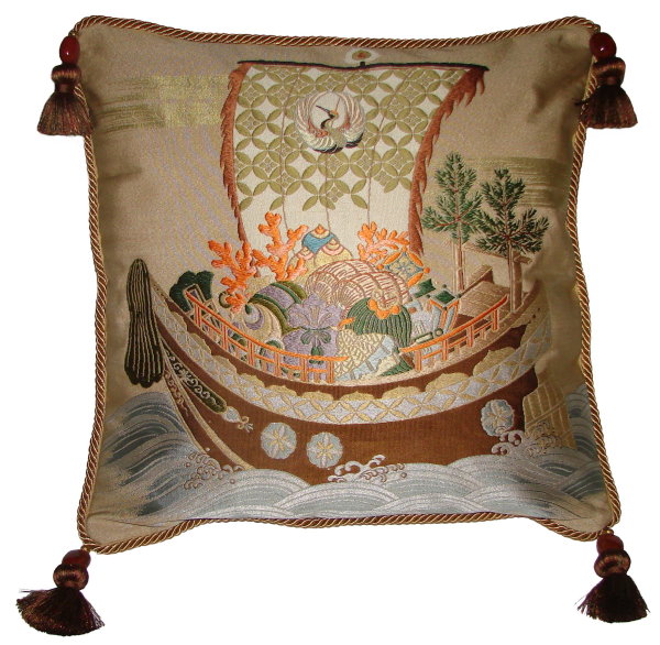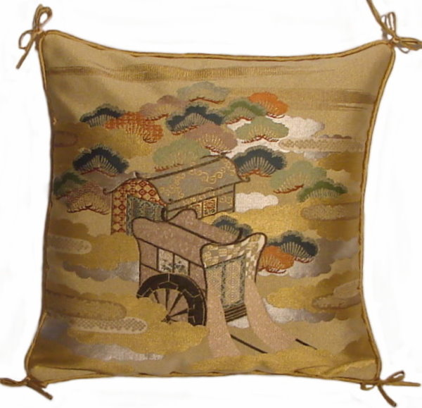 There are several kinds of Fukusa but not all are appropriate to be used in the construction of pillows. The ones we use are traditionally used by the Japanese to cover an important ceremonial gift during its presentation. They are a woven square of silk or silk and metallic fabric and are hand woven with intricate loom embroidery. In addition, some of these Fukusa also have hand embroidered highlights. Fukusa that are suitable for pillows and are in acceptable condition are becoming increasingly scarce and hard to find. And as Fukusa become more scarce, the prices have also increased dramatically. Fukusa are a beautiful, disappearing piece of Japanese cultural history.