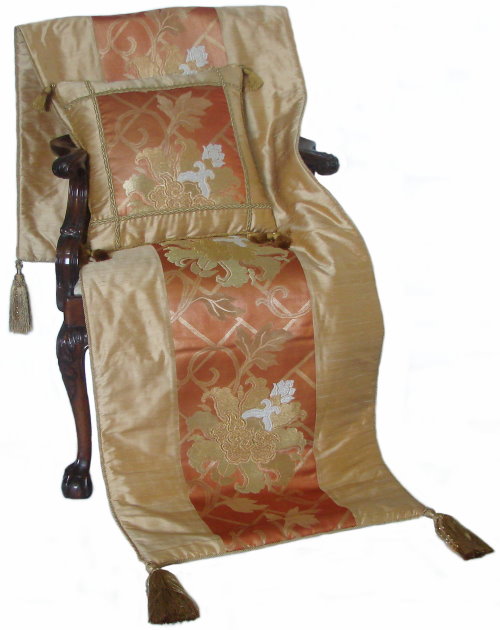 Each of our products is one-of-a-kind. However, we are glad to work with you to select materials and trims from our extensive supply to create a throw or pillow that meets your specific needs.