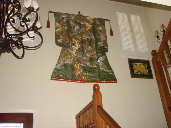 Wedding kimono used as a wall hanging